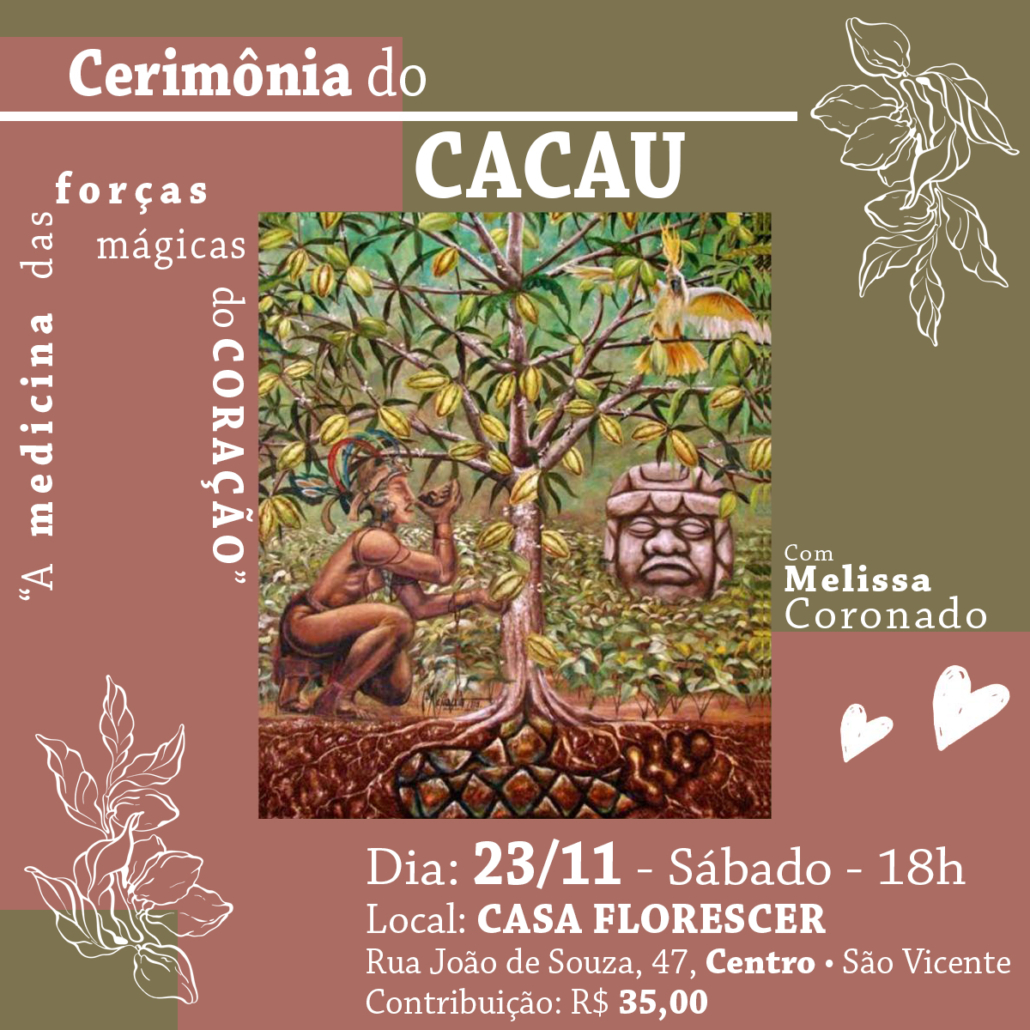 O néctar dos deuses, capaz de estimular a produção de serotonina, o hormônio do prazer. Atua principalmente no sistema circulatório, dá energia e melhora a disposição. E quando utilizado com danças e meditação guiada/ativa, age no chakra do coração. O Cacau é uma energia feminina que conduz a resoluções e a evolução pelos caminhos do amor, prazer e alegria.