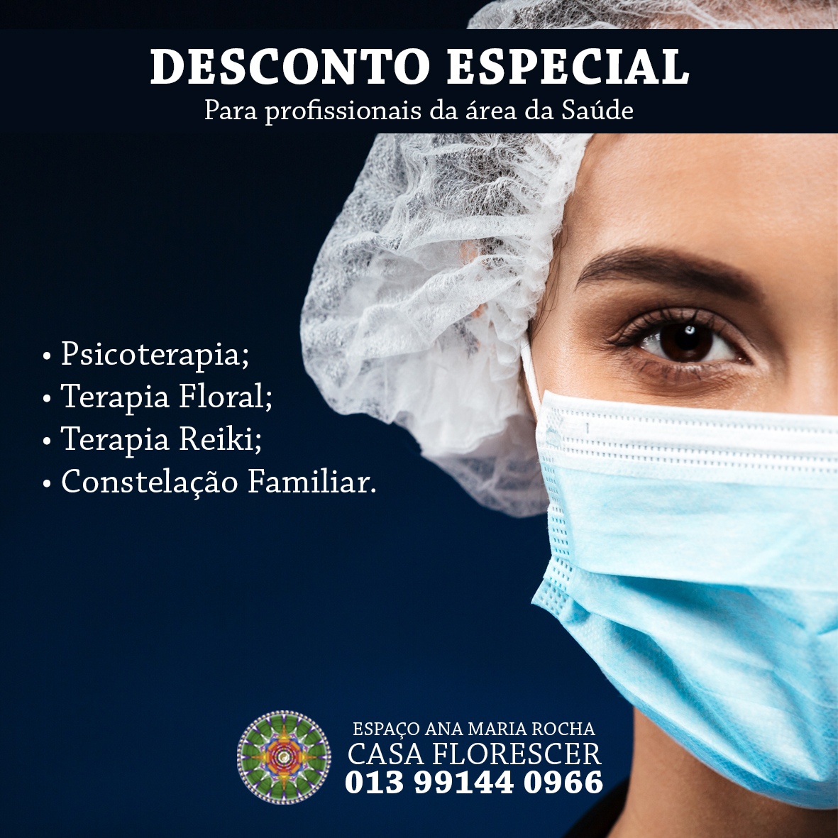 Pensando nisso, a Psicoterapeuta Ana Maria Rocha, decidiu oferecer atendimentos de Psicanálise, Terapia Floral (Bach e Saint Germain), Terapia Reiki e Constelação Familiar, com valores promocionais aos profissionais da área da Saúde.
