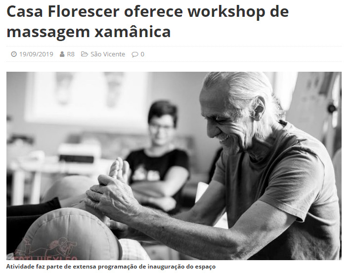 O massagista irá compartilhar seus mais de 40 anos de experiência em workshop na Casa Florescer, em São Vicente, na próxima segunda-feira (23/09), das 19 às 21 horas. As inscrições devem ser feitas pelo e-mail anamariarocha.crt42093@gmail.com ou pelo site institutoflorescerxamanico.com.br/contato e a taxa de inscrição custa R$ 60,00.