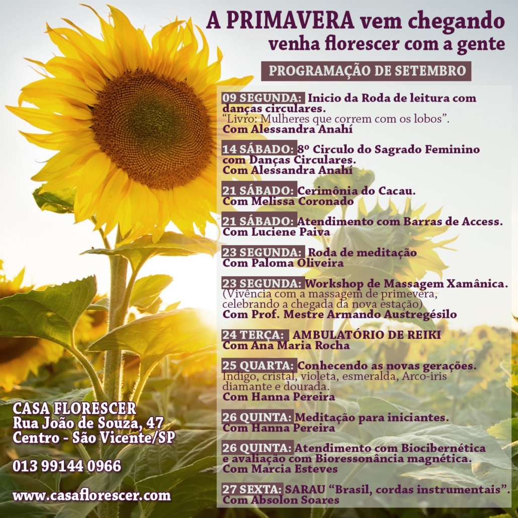 Anote a programação do mês de setembro, e venha celebrar essa nova estação e florescer com a gente.
